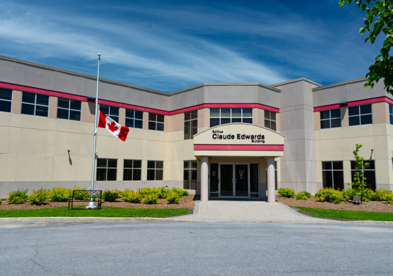 Canada’s national flag flying at half-mast during National Public Service Week at the Claude Edwards Building in Ottawa in memory of the passing of Federal Retirees members. On the last workday during National Public Service Week, the National Association…