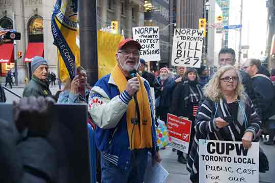 National Organization of Retired Postal Workers representative and Canadian Coalition for Retirement Security member, Peter Whitaker, at the November 28 event in Toronto.   On November 28, the Canadian Union of Postal Workers (CUPW) and the National Organization of Retired…