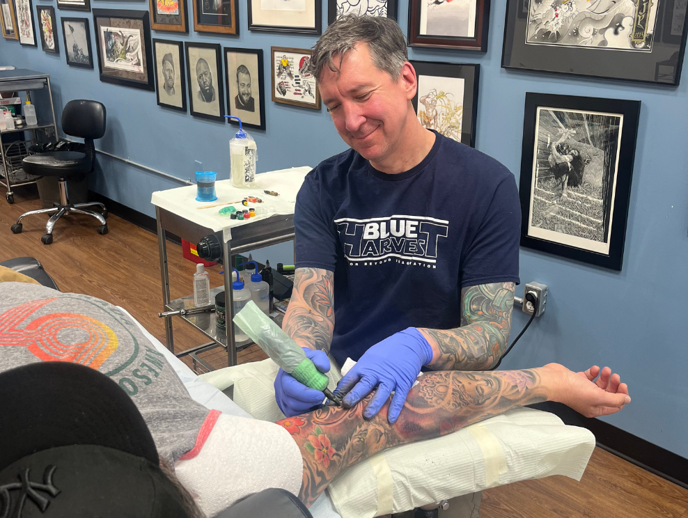 “A lot of people [over 60] are getting their first ones,” says Glen Paradis, owner-artist at Barnstormer Studio in Ottawa, “and they’re like, ‘it’s always been on the back burner,’ Once they realize the tattoos are actually a good thing, as far as the whole stigma being lightened up a little bit, they’re all over it.”
